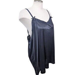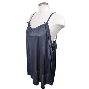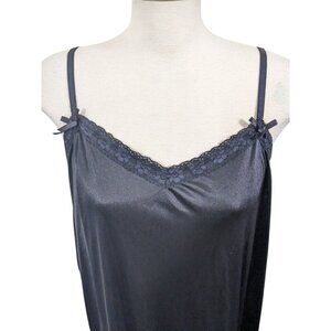 Vintage Camisole Lace Trim Bows Plus Size 3X Black Slinky Semi Sheer Adjustable