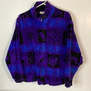 Vintage Canada Fun Fleece Full Zip Jacket Sweater Medium