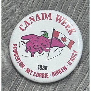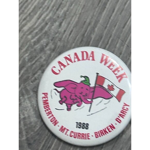 Vintage Canada Week 1988 Pinback Button Elephant With Canadian Flag Logo