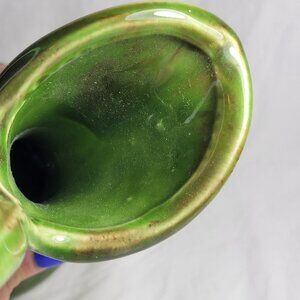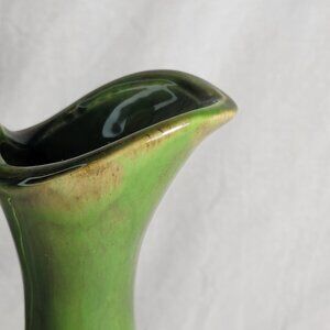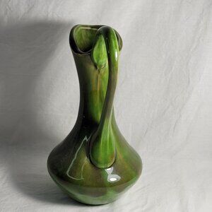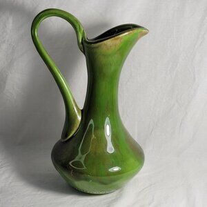 This vintage Canadian Art Studio pottery pitcher jug is a testament to the timeless appeal of mid-century modern design. The piece features a striking green drip glaze finish that beautifully complements its classic shape.
