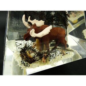 Vintage Canadian Lucite Prism Paperweight Diorama Moose Wildlife Scene
