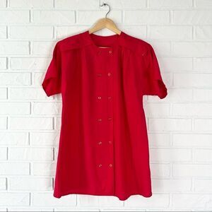 Vintage Canadian Made Red Oversized Boxy Short Sleeve Tunic Top Blouse S