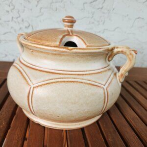 Vintage Canadian Pottery Stoneware Soup Tureen with Lid & Handles, 7" x 9"