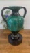 This striking vintage Canadian pottery vase features the signature deep emerald-to-black drip glaze often associated with Blue Mountain Pottery. Its amphora-style shape, elegant curved handles, and glossy finish make it a standout piece of mid-century Canadian design.