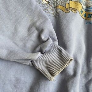 » Fair condition. As shown in the photos, there are signs of wear on the cuffs and spots stains on the sleeves and back. However, the front of the sweater is in great condition.