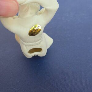 In their original box, these bisque ceramic taper candle huggers are all white and measure about 3.75" long.