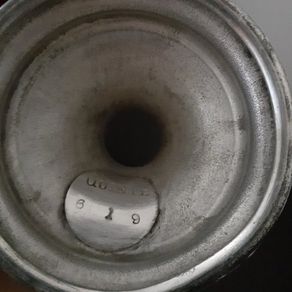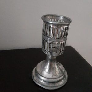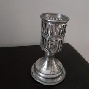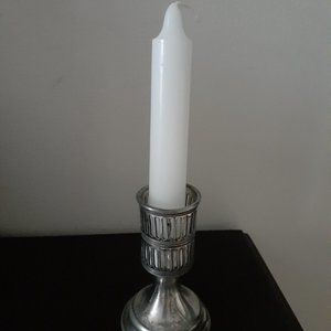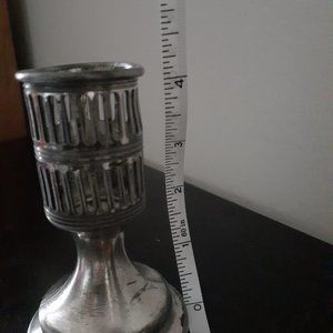 Silver single candle holder , has some patina, some verdigris, and some corrosion.