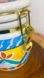 Crafted with a unique, colorful pattern the ceramic body is complemented by a sturdy metal wire bale lid, embodying the retro aesthetic that makes it a standout piece in wonderful condition! Its retro flair and functionality is sure to please coffee lovers!