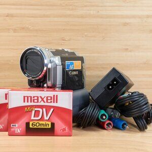 The Canon HV10 is a compact HDV camcorder capable of recording stunning Full HD 1080i video to MiniDV tapes. Made in Japan, it delivers excellent image quality with true-to-life colors and sharp details. Perfect for collectors, video enthusiasts, or anyone looking to preserve memories in high definition.