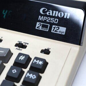 The Vintage Canon MP250 Printing Desk Calculator Adding Machine is a useful tool for anyone who needs to do calculations quickly. It has a large display that makes it easy to see the numbers. This machine has been tested to ensure it works well, giving you confidence in its performance. Whether for home use or in an office, this calculator can help you keep track of your calculations neatly. Its vintage design adds a unique touch to your workspace.