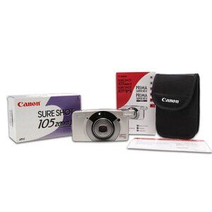 Vintage Canon Sure Shot 150 Zoom S Camera 35mm Retro Lomography Silver Flash Case Box