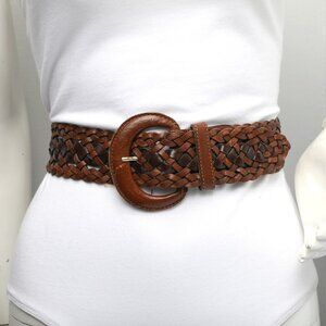 Vintage Capezio Braided Leather Wide Belt Woven Boho Brown Gold 90s Classic
