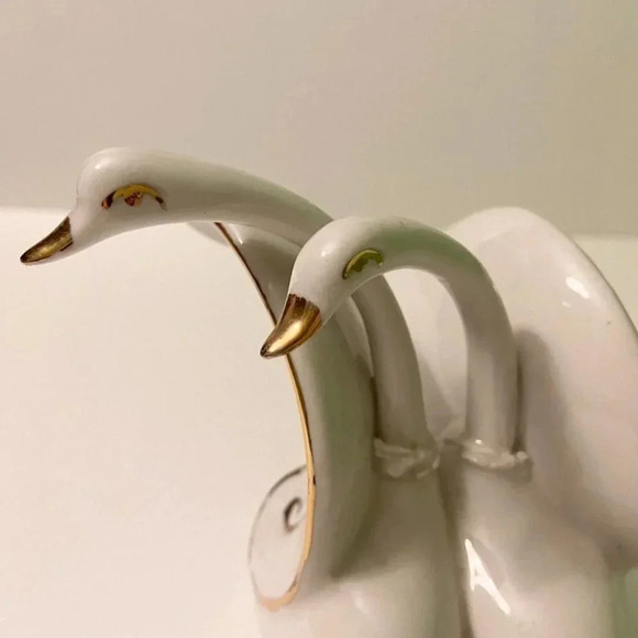 Vintage Capodimonte Double Swan Figurine White With Gold Trim Made In Italy Flaw