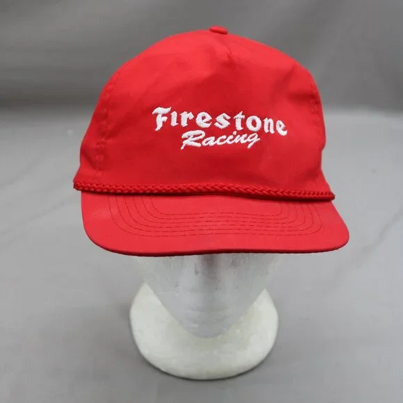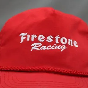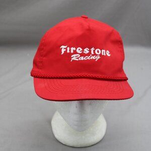Up for sale is a vintage car racing hat. It has a red base colour with Firestone Racing stitiched into the front. The bakc of hat has an Indy car stitiched in. What a great hat do not miss out on it.