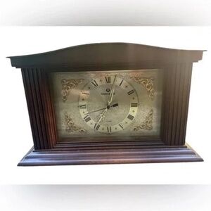 Caravelle Mantle Table Clock Wood Brown 1970's Made in Canada Tested and Working Minor scratches- please refer to the pictures for close ups as they are apart of the description Beautiful wood detailing Battery compartment located in the back Battery not included.. requires 1 D battery