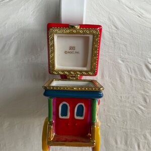 Nice weighty piece for its size, this bright little train car is suitable for tree or tabletop decor.