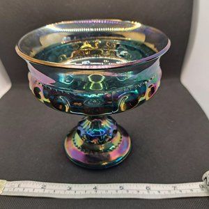 Vintage Carnival Glass Kings Crown Thumbprint Blue Iridescent Indiana Compote