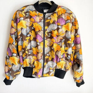 Vintage Carol Horn Silk Colourful Leaf Print Bomber JAcket M