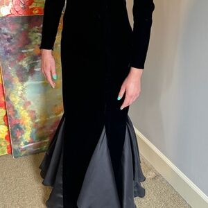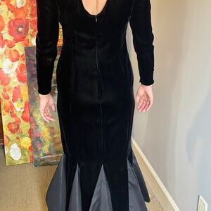 This stunning vintage black velvet dress by Carolina Herrera has built in shoulder pads and lined in silk. Made in the U.S.A in the 1980's.