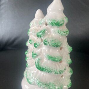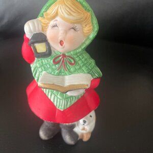 Vintage Caroller Potpourri Figure and House Tea Light Holder. Both ceramic, made in Taiwan. Both 5" tall approximately. Excellent pre owned condition. One of the trees is worn at the tip. Barely noticeable as shown in last picture.