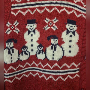 Vintage Carroll Reed Christmas Buttoned Sweater Red, Snowmen Family