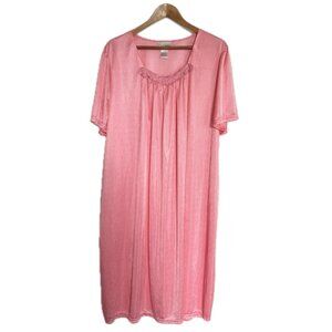 Vintage Carroll Reed Nightgown Women XL Pink Embroidery 80s Lounge House Dress