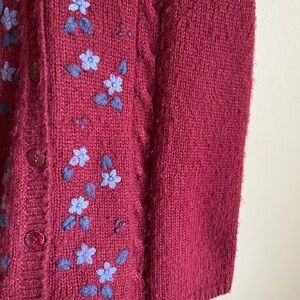 Vintage Carroll Reed | Red Knit Vest w/ Blue Floral Embroidery