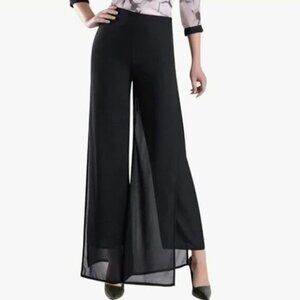 Features: Sheer, side slits, high waist, wide leg, back zip closure