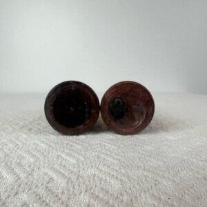 Vintage Carved Handmade Wooden Pair Two 2 MCM Boho Candle Holders Brown Retro