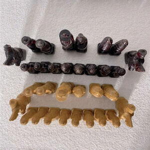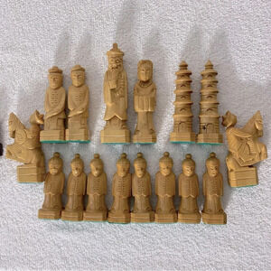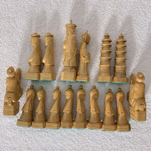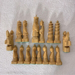 Vintage Carved Wood Chess Pieces