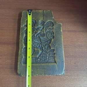 This vintage carved art panel features intricate designs in a rustic brown hue. Perfect for adding a touch of classic charm to your home decor.