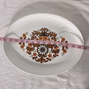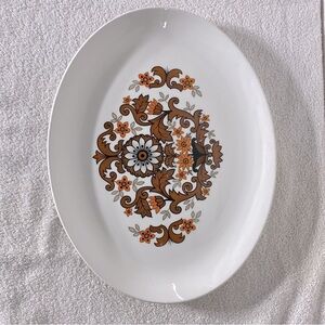 Vintage Cassandra Hostess Tableware MCM Brown Orange Floral Print Oval Platter