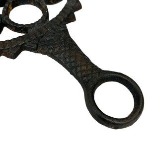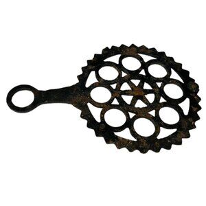 Vintage Cast Iron Handled Trivet Pot Holder Round Geometric Pattern Kitchen Art