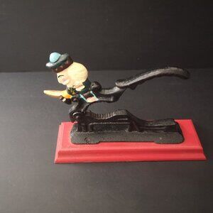 Vintage Cast Iron Nut Cracker on a Red Wooden Base Christmas Soldier
