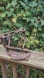 Vintage unique wine bottle holder. This is an interesting piece made from heavy cast iron in the shape of an iron, horse shoes, and chains. I am not sure if it originally intended to hold wine or for garden decor, it is just a great rusty rustic piece.
