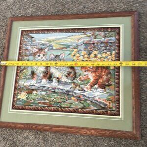 Vintage Cat Framed Cross Stitch Picture 27” x 23”