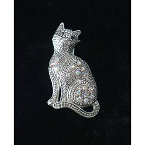 For your consideration is a vintage is a cat brooch with rhinestones and silver tone.