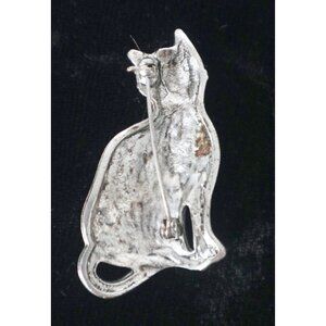 Vintage Cat Silver Tone Butler Rhinestone Brooch Pin