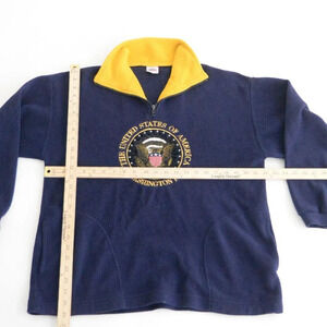 The blue and yellow color scheme adds a touch of vintage Americana, proudly showcasing the United States of America D.C. theme. The fleece fabric provides warmth and coziness, making it an ideal choice for casual outings, chilly evenings, or cozy weekends. With its size L, this sweater ensures a comfortable fit for a relaxed and laid-back look.