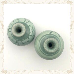 Elevate your space with this pair of charming mini celadon vases, each showcasing traditional East Asian artistry. These petite ceramic pieces feature a soft green glaze with a delicate crackled finish, adding depth and character. One vase displays a graceful floral motif, while the other is adorned with a serene bamboo design—both hand-painted in darker tones for contrast.