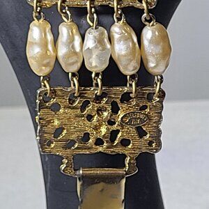 Vintage Celebrity NY Freshwater Pearl Wide Gold-Tone Bracelet