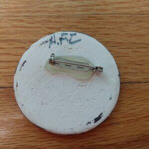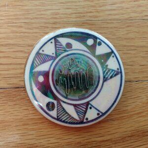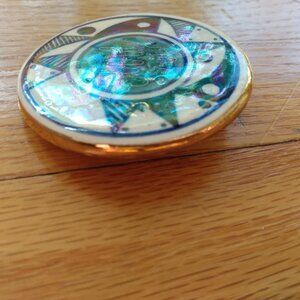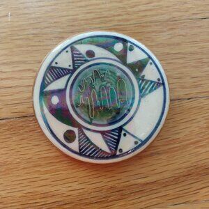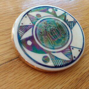 Vintage Celestial Ceramic Brooch Handmade Pottery Blue White Gold Iridescent