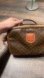 Elegant Celine crossbody bag with monogram pattern. Features rich brown leather and adjustable strap. Ideal for versatile styling.