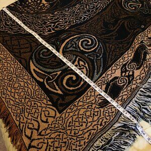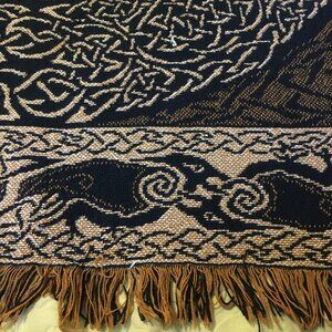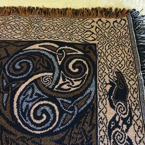 Vintage Celtic Triple Raven Tapestry Afghan Throw by Artist Jen Delyth