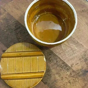 Vintage Ceramic Basket with Lid Sugar Bowl Trinket Box Brown Glossy Finish