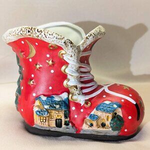 Vintage Ceramic Christmas Boot Decoration 5" x 4" x 3.5"