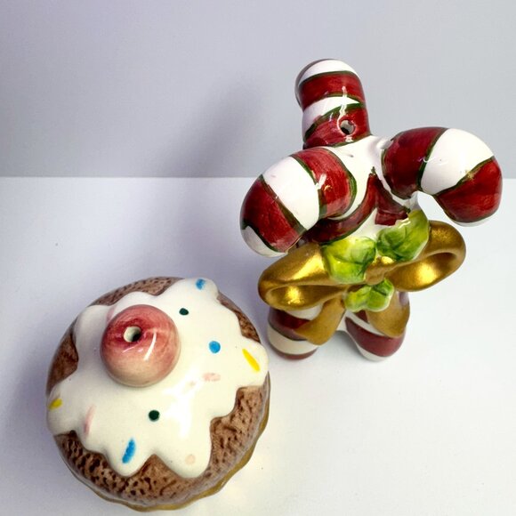 Vintage Ceramic Christmas Salt and Pepper Shakers Cupcake and Candy Cane