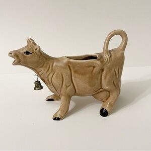 Vintage Ceramic Cow Creamer with Bell Figurine 6” Long Farm Animal
