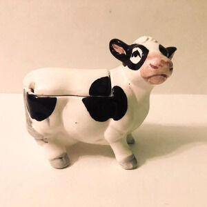 Vintage Ceramic Cow Sugar Bowl Container 4 Inch Long Figurine