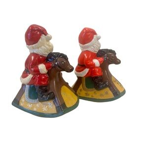 Vintage Ceramic Handpainted Rocking Horse Santa